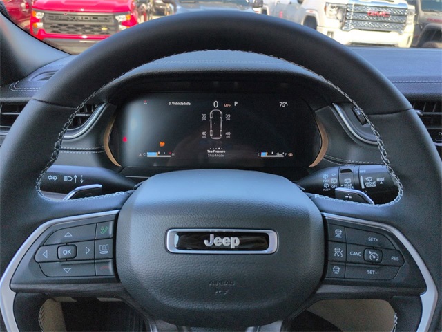 Black Appearance Package (Gloss Black Exterior Accents and Wheels: 20" x 8.5" Gloss Black Painted Aluminum), Luxury Tech Group II (2nd Row Manual Window Shades, Auto-Dimming Exterior Driver Mirror, Capri Leatherette w/Axis II Seats, Integrated Off-Road Camera, Intersection Collision Assist System, Memory Steering Column, ParkSense Front/Rear Park Assist w/Stop, Passive Entry - Front/Rear Doors, Liftgate, Power Tilt/Telescope Steering Column, Rain Sensitive Windshield Wipers, Rear Back Up Camera Washer, Rearview Autodim Digital Display Mirror, Surround View Camera System, Ventilated Front Seats, and Wireless Charging Pad), Quick Order Package 23E (DISC), Trailer Tow Package (220 Amp Alternator, 7 & 4 Pin Wiring Harness, Automatic Headlamp Leveling System, Class IV Receiver Hitch, Dual Exhaust Tips, Heavy-Duty Engine Cooling, Rear Load Leveling Suspension, and Trailer Hitch Zoom), 3.45 Rear Axle Ratio, 3rd row seats: split-bench, 4-Wheel Disc Brakes, 506 Watt Amplifier, 6 Speakers, 9 Amplified Speakers w/Subwoofer, ABS brakes, Active Noise Control System, Air Conditioning, Alloy wheels, AM/FM radio: SiriusXM with 360L, Anti-whiplash front head restraints, Audio memory, Auto High-beam Headlights, Automatic temperature control, Brake assist, Bumpers: body-color, Capri Leatherette Seats, Compass, Delay-off headlights, Driver door bin, Driver vanity mirror, Dual front impact airbags, Dual front side impact airbags, Dual-Pane Panoramic Sunroof, Electronic Stability Control, Emergency communication system, Four wheel independent suspension, Front anti-roll bar, Front Bucket Seats, Front Center Armrest w/Storage, Front dual zone A/C, Front fog lights, Front reading lights, Fully automatic headlights, Garage door transmitter, Heated door mirrors, Heated front seats, Heated rear seats, Heated steering wheel, Illuminated entry, Interior Rear Facing Camera, Knee airbag, Low tire pressure warning, Manual Fold Seatbacks, Memory seat, Model Year Tracking, Navigation System, Normal Duty Suspension, Occupant sensing airbag, Outside temperature display, Overhead airbag, Overhead console, Panic alarm, ParkView Rear Back-Up Camera, Passenger door bin, Passenger vanity mirror, Power door mirrors, Power driver seat, Power Liftgate, Power passenger seat, Power steering, Power windows, Radio data system, Radio: Uconnect 5 Nav w/10.1" Display, Rear air conditioning, Rear anti-roll bar, Rear reading lights, Rear window defroster, Rear window wiper, Reclining 3rd row seat, Remote keyless entry, Security system, Speed control, Speed-Sensitive Wipers, Split folding rear seat, Spoiler, Steering wheel mounted audio controls, Tachometer, Telescoping steering wheel, Tilt steering wheel, Traction control, Trip computer, Turn signal indicator mirrors, Variably intermittent wipers, Voltmeter, and Wheels: 18" x 8.0" Polished/Painted Aluminum. Price includes: $1250 - 2025 South BC Retail Bonus Cash . Exp. 01/05/2026 $2000 - 2025 National Holiday Select Inventory Bonus Cash. Exp. 01/05/2026 $2500 - 2025 National Retail Bonus Cash . Exp. 01/05/2026 $750 - 2025 South BC SFS Retail Bonus Cash. Exp. 01/05/2026