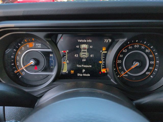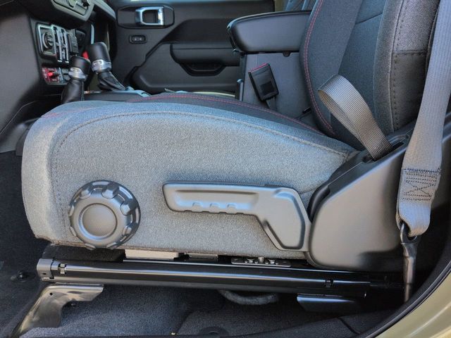 Quick Order Package 22R Rubicon, 4-Wheel Disc Brakes, 4.10 Rear Axle Ratio, 4G LTE Wi-Fi Hot Spot, 8 Speakers, 97 MPH Vehicle Max Speed Calibration, ABS brakes, Air Conditioning, Alloy wheels, Alpine Premium Audio System, AM/FM radio: SiriusXM, Apple CarPlay, Apple CarPlay/Android Auto, Automatic temperature control, Aux Battery, Auxiliary Switches, Brake assist, Class II Receiver Hitch, Cloth Low-Back Bucket Seats, Compass, Connectivity - US/Canada, Delay-off headlights, Driver door bin, Driver vanity mirror, Dual front impact airbags, Dual front side impact airbags, Electronic Stability Control, Emergency communication system: Jeep Connect, Front anti-roll bar, Front Bucket Seats, Front Center Armrest w/Storage, Front dual zone A/C, Front fog lights, Front reading lights, Fully automatic headlights, Google Android Auto, Heated door mirrors, Illuminated entry, Integrated roll-over protection, Low tire pressure warning, MOPAR All-Weather Floor Mats, Non-Lock Fuel Cap w/o Discriminator, Occupant sensing airbag, Outside temperature display, Overhead airbag, Panic alarm, ParkView Rear Back-Up Camera, Passenger door bin, Passenger vanity mirror, Performance Suspension, Power door mirrors, Power steering, Power Top Quarter Window Storage Bag, Power windows, Radio data system, Radio: Uconnect 5 w/12.3" Display, Rear anti-roll bar, Rear reading lights, Rear Window Defroster, Rear Window Wiper/Washer, Remote keyless entry, Removable Rear Quarter Windows, Security system, Sky 1-Touch Power Top, Speed control, Split folding rear seat, Steering wheel mounted audio controls, Stop-Start Dual Battery System, Tachometer, Telescoping steering wheel, Tilt steering wheel, Traction control, Trip computer, Variably intermittent wipers, Voltmeter, and Wheels: 17" x 7.5" Machined/Painted Black.