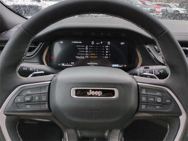 Laredo Altitude Appearance Package, Quick Order Package 2BB Laredo Altitude (12.3" Touchscreen Display, 240 Amp Alternator, 4G LTE Wi-Fi Hot Spot, Active Driving Assist System, Active Noise Control System, an-Teak/Satin Chrome Interior Accents, Apple CarPlay, Black Headliner, Body Color Door Handles (B), Capri Leatherette/Suede Seats, Connected Travel and Traffic Services, Connectivity - US/Canada, Delete Laredo Badge, Disassociated Touchscreen Display, Dual Exhaust Tips, Exterior Accents Dark Neutral Metallic, For Details, Visit DriveUconnect.com, Front Fascia Upper A, Global Telematics Box Module (TBM), Google Android Auto, GPS Antenna Input, GPS Navigation, HD Radio, Heated Front Seats, Heated Steering Wheel, Heavy-Duty Engine Cooling, Integrated Center Stack Radio, Integrated Voice Command with Bluetooth, Intersection Collision Assist System, Power Liftgate, Radio: Uconnect 5 Nav with 12.3" Display, Rain Sensitive Windshield Wipers, Rear Fascia Upper A, Remote Start System, Selectable Tire Fill Alert, SiriusXM with 360L, Traffic Sign Recognition, USB Host Flip, Wheels: 18" x 8.0" Fully Painted Aluminum 1, and Wireless Charging Pad), 4-Wheel Disc Brakes, 6 Speakers, ABS brakes, Air Conditioning, Alloy wheels, AM/FM radio: SiriusXM, Anti-whiplash front head restraints, AppLink/Apple CarPlay and Android Auto, Automatic temperature control, Auxiliary Battery, Brake assist, Bumpers: body-color, Cloth Seats, Compass, Delay-off headlights, Driver door bin, Driver vanity mirror, Dual front impact airbags, Dual front side impact airbags, Electronic Stability Control, Emergency communication system, Four wheel independent suspension, Front anti-roll bar, Front Bucket Seats, Front Center Armrest w/Storage, Front dual zone A/C, Front reading lights, Fully automatic headlights, Gloss Black Exterior Mirrors, Heated door mirrors, Heated Exterior Mirrors, Illuminated entry, Knee airbag, Low tire pressure warning, Manual Folding Exterior Mirrors, Normal Duty Suspension, Occupant sensing airbag, Outside temperature display, Overhead airbag, Overhead console, Panic alarm, ParkView Rear Back-Up Camera, Passenger door bin, Passenger vanity mirror, Power door mirrors, Power driver seat, Power steering, Power Sunroof, Power windows, Radio data system, Radio: Uconnect 5 with 8.4" Display, Rear anti-roll bar, Rear reading lights, Rear window defroster, Rear window wiper, Remote keyless entry, Security system, Speed control, Speed-Sensitive Wipers, Split folding rear seat, Spoiler, Steering wheel mounted audio controls, Tachometer, Telescoping steering wheel, Tilt steering wheel, Traction control, Trip computer, Variably intermittent wipers, Voltmeter, and Wheels: 18" x 8.0" Fully Painted AluminuM.