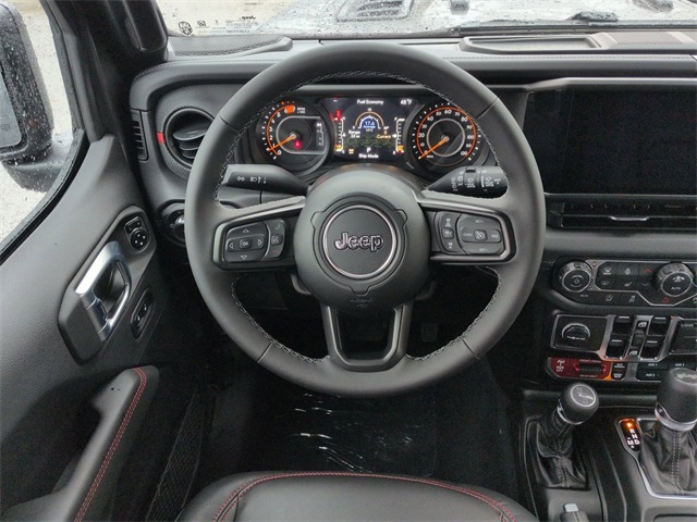 Convenience Group (Heated Front Seats, Heated Steering Wheel, and Universal Garage Door Opener), Quick Order Package 24R Rubicon, Safety Group (Auto High Beam Headlamp Control, Blind Spot and Cross Path Detection, and ParkSense Rear Park Assist System), Technology Group (12.3" Touchscreen Display, 4G LTE Wi-Fi Hot Spot, Apple CarPlay, Auto-Dimming Rear-View Mirror, Connected Travel and Traffic Services, Connectivity - US/Canada, For More Info, Call 800-643-2112, Google Android Auto, GPS Navigation, HD Radio, Integrated Center Stack Radio, Integrated Off-Road Camera, Integrated Voice Command with Bluetooth, Radio: Uconnect 5 Navigation with 12.3" Display, SiriusXM Radio Service, and SiriusXM with 360L), 4-Wheel Disc Brakes, 4.10 Rear Axle Ratio, 8 Speakers, ABS brakes, Air Conditioning, Alloy wheels, Alpine Premium Audio System, AM/FM radio: SiriusXM with 360L, Apple CarPlay/Android Auto, Automatic temperature control, Aux Battery, Auxiliary Switches, Brake assist, Class II Receiver Hitch, Cloth Low-Back Bucket Seats, Compass, Delay-off headlights, Driver door bin, Driver vanity mirror, Dual front impact airbags, Dual front side impact airbags, Electronic Stability Control, Emergency communication system: Jeep Connect, Front anti-roll bar, Front Bucket Seats, Front Center Armrest w/Storage, Front dual zone A/C, Front fog lights, Front reading lights, Fully automatic headlights, Heated door mirrors, Illuminated entry, Integrated roll-over protection, Low tire pressure warning, MOPAR All-Weather Floor Mats, Non-Lock Fuel Cap Without Discriminator, Occupant sensing airbag, Outside temperature display, Overhead airbag, Panic alarm, ParkView Rear Back-Up Camera, Passenger door bin, Passenger vanity mirror, Performance Suspension, Power door mirrors, Power steering, Power Top Quarter Window Storage Bag, Power windows, Radio data system, Radio: Uconnect 5 with 12.3" Display, Rear anti-roll bar, Rear reading lights, Rear Window Defroster, Rear Window Wiper/Washer, Remote keyless entry, Removable Rear Quarter Windows, Security system, Sky 1-Touch Power Top, Speed control, Split folding rear seat, Steering wheel mounted audio controls, Stop-Start Dual Battery System, Tachometer, Telescoping steering wheel, Tilt steering wheel, Traction control, Trip computer, Variably intermittent wipers, Voltmeter, and Wheels: 17" x 7.5" Machined/Painted Black. Price includes: $4000 - 2026 National Select Inventory Bonus Cash. Exp. 01/05/2026