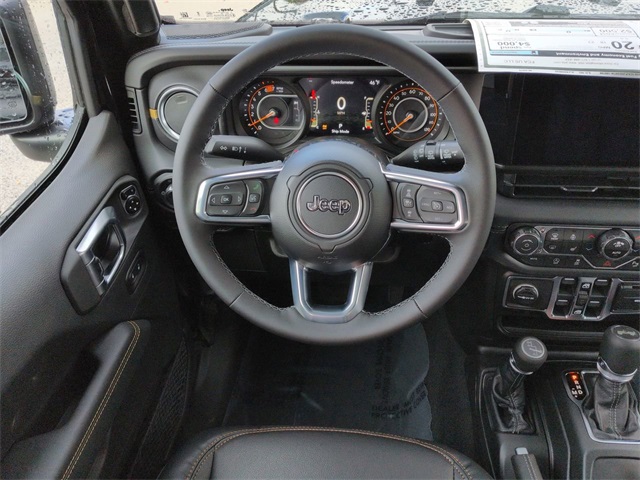 Quick Order Package 24G, Sahara Popular Equipment Group (12.3" Touchscreen Display, 4G LTE Wi-Fi Hot Spot, Alpine Premium Audio System, Apple CarPlay, Auto High Beam Headlamp Control, Auto-Dimming Rear-View Mirror, Blind Spot & Cross Path Detection, Connected Travel & Traffic Services, Connectivity - US/Canada, For More Info, Call 800-643-2112, Google Android Auto, GPS Navigation, Hard Seat Back, HD Radio, Integrated Center Stack Radio, Integrated Off-Road Camera, Integrated Voice Command w/Bluetooth, Leather Wrapped Park Brake Handle, Leather Wrapped Shift Knob, McKinley Trimmed Seats, ParkSense Rear Park Assist System, Power 4-Way Driver Lumbar Adjust, Power 4-Way Passenger Lumbar Adjust, Power Adjust 8-Way Driver Seat, Power Adjust 8-Way Front Passenger Seat, Radio: Uconnect 5 Nav w/12.3" Display, Side Steps, SiriusXM Radio Service, SiriusXM w/360L, and Universal Garage Door Opener), 3.45 Overall Top Gear Ratio, 4-Wheel Disc Brakes, 8 Speakers, ABS brakes, Air Conditioning, Alloy wheels, AM/FM radio: SiriusXM with 360L, Apple CarPlay/Android Auto, Automatic temperature control, Aux Battery, Brake assist, Cloth Low-Back Bucket Seats, Compass, Delay-off headlights, Driver door bin, Driver vanity mirror, Dual front impact airbags, Dual front side impact airbags, Electronic Stability Control, Emergency communication system: Jeep Connect, Front anti-roll bar, Front Bucket Seats, Front Center Armrest w/Storage, Front dual zone A/C, Front fog lights, Front reading lights, Fully automatic headlights, Heated door mirrors, Heated front seats, Heated steering wheel, Heavy Duty Suspension w/Gas Shocks, Illuminated entry, Integrated roll-over protection, Low tire pressure warning, MOPAR All-Weather Floor Mats, Non-Lock Fuel Cap w/o Discriminator, Occupant sensing airbag, Outside temperature display, Overhead airbag, Panic alarm, ParkView Rear Back-Up Camera, Passenger door bin, Passenger vanity mirror, Power door mirrors, Power steering, Power Top Quarter Window Storage Bag, Power windows, Radio data system, Radio: Uconnect 5 w/12.3" Display, Rear anti-roll bar, Rear reading lights, Rear Window Defroster, Rear Window Wiper/Washer, Remote keyless entry, Removable Rear Quarter Windows, Security system, Sky 1-Touch Power Top, Speed control, Split folding rear seat, Steering wheel mounted audio controls, Stop-Start Dual Battery System, Tachometer, Telescoping steering wheel, Tilt steering wheel, Traction control, Trip computer, Variably intermittent wipers, Voltmeter, and Wheels: 18" x 7.5" Machine/Painted Gray. Price includes: $2500 - 2026 National Select Inventory Bonus Cash. Exp. 01/05/2026