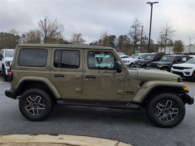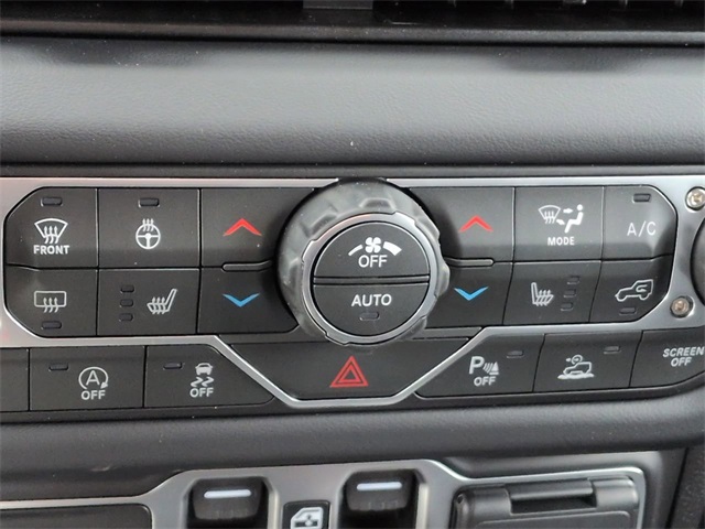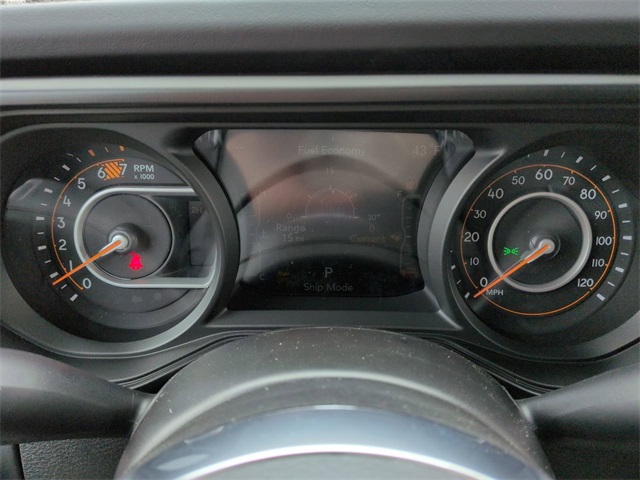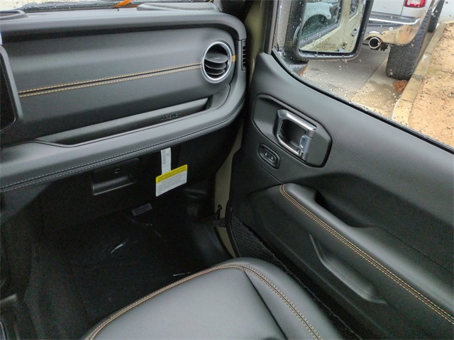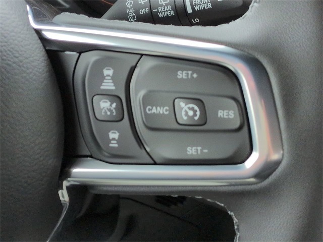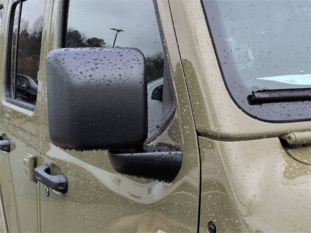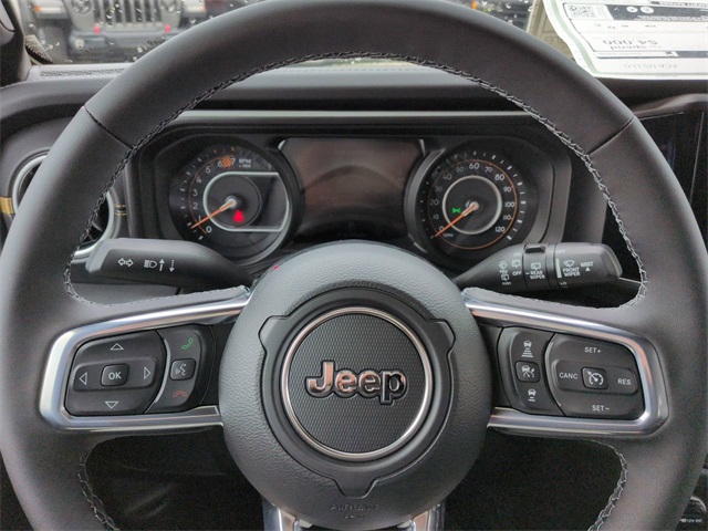 Quick Order Package 24G, Sahara Popular Equipment Group (12.3" Touchscreen Display, 4G LTE Wi-Fi Hot Spot, Alpine Premium Audio System, Apple CarPlay, Auto High Beam Headlamp Control, Auto-Dimming Rear-View Mirror, Blind Spot & Cross Path Detection, Connected Travel & Traffic Services, Connectivity - US/Canada, For More Info, Call 800-643-2112, Google Android Auto, GPS Navigation, Hard Seat Back, HD Radio, Integrated Center Stack Radio, Integrated Off-Road Camera, Integrated Voice Command w/Bluetooth, Leather Wrapped Park Brake Handle, Leather Wrapped Shift Knob, McKinley Trimmed Seats, ParkSense Rear Park Assist System, Power 4-Way Driver Lumbar Adjust, Power 4-Way Passenger Lumbar Adjust, Power Adjust 8-Way Driver Seat, Power Adjust 8-Way Front Passenger Seat, Radio: Uconnect 5 Nav w/12.3" Display, Side Steps, SiriusXM Radio Service, SiriusXM w/360L, and Universal Garage Door Opener), 3.45 Overall Top Gear Ratio, 4-Wheel Disc Brakes, 8 Speakers, ABS brakes, Air Conditioning, Alloy wheels, AM/FM radio: SiriusXM with 360L, Apple CarPlay/Android Auto, Automatic temperature control, Aux Battery, Brake assist, Cloth Low-Back Bucket Seats, Compass, Delay-off headlights, Driver door bin, Driver vanity mirror, Dual front impact airbags, Dual front side impact airbags, Electronic Stability Control, Emergency communication system: Jeep Connect, Front anti-roll bar, Front Bucket Seats, Front Center Armrest w/Storage, Front dual zone A/C, Front fog lights, Front reading lights, Fully automatic headlights, Heated door mirrors, Heated front seats, Heated steering wheel, Heavy Duty Suspension w/Gas Shocks, Illuminated entry, Integrated roll-over protection, Low tire pressure warning, MOPAR All-Weather Floor Mats, Non-Lock Fuel Cap w/o Discriminator, Occupant sensing airbag, Outside temperature display, Overhead airbag, Panic alarm, ParkView Rear Back-Up Camera, Passenger door bin, Passenger vanity mirror, Power door mirrors, Power steering, Power Top Quarter Window Storage Bag, Power windows, Radio data system, Radio: Uconnect 5 w/12.3" Display, Rear anti-roll bar, Rear reading lights, Rear Window Defroster, Rear Window Wiper/Washer, Remote keyless entry, Removable Rear Quarter Windows, Security system, Sky 1-Touch Power Top, Speed control, Split folding rear seat, Steering wheel mounted audio controls, Stop-Start Dual Battery System, Tachometer, Telescoping steering wheel, Tilt steering wheel, Traction control, Trip computer, Variably intermittent wipers, Voltmeter, and Wheels: 18" x 7.5" Machine/Painted Gray.