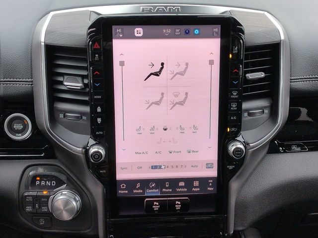 Laramie Level 2 Equipment Group (14.4" Touchscreen Display, 4G LTE Wi-Fi Hot Spot, Cluster 12" TFT Color Display, Connected Travel and Traffic Services, Connectivity - US/Canada, Front Passenger Interactive Display, GPS Navigation, Harman/Kardon 19 Speaker Premium Sound, Integrated Center Stack Radio, Integrated Voice Command with Bluetooth, Power Tailgate, Radio: Uconnect 5 Nav with 14.4" Display, Rain Sensitive Windshield Wipers, SiriusXM Radio Service, SiriusXM with 360L, and USB Host Flip), Night Edition (Accent Color Door Handles, Accent Color Premium Power Mirrors, Accent Color Tailgate Handle, Anti-Spin Differential Rear Axle, Auto Power-Folding Mirrors, Auto-Dimming Exterior Driver Mirror, Black Exterior Truck Badging, Black Headlamp Bezels, Black Interior Accents, Black Painted Exterior Mirrors Caps, Black Tail Lamp Bezels, Body Color Front Bumper, Body Color Rear Bumper with Step Pads, Convex Wide-Angle Exterior Mirror Insert, Dual Exhaust with Black Tips, Exterior Mirrors Approach Lamps, Exterior Mirrors Courtesy Lamps, Exterior Mirrors with Heating Element, Exterior Mirrors with Memory, Exterior Mirrors with Supplemental Signals, Grille Surround 3 Black Texture 2 Black, Pirelli Brand Tires, Proximity Approach/Departure Lamps, RAM Grille Badge - Black, Sport Performance Hood, and Wheels: 22" x 9" Forged Aluminum), Quick Order Package 27H Laramie, 10 Speakers, 4-Wheel Disc Brakes, ABS brakes, Active Noise Control System, Adjustable pedals, Air Conditioning, Alloy wheels, AM/FM radio: SiriusXM with 360L, Apple CarPlay/Android Auto, Audio memory, Auto High-beam Headlights, Auto-dimming door mirrors, Auto-dimming Rear-View mirror, Automatic temperature control, Brake assist, Bumpers: chrome, Chrome Exterior Mirrors, Compass, Delay-off headlights, Dome Dual LED Reading Lamp, Driver door bin, Driver vanity mirror, Dual front impact airbags, Dual front side impact airbags, Dual-Pane Panoramic Sunroof, Electronic Stability Control, Front anti-roll bar, Front Bucket Seats, Front Center Armrest w/Storage, Front dual zone A/C, Front fog lights, Front reading lights, Front wheel independent suspension, Fully automatic headlights, Garage door transmitter, Heated door mirrors, Heated front seats, Heated rear seats, Heated steering wheel, Illuminated entry, Leather steering wheel, Leather Trimmed Bucket Seats, LED Dome/Reading Lamp, Low tire pressure warning, Memory seat, MOPAR Front and Rear Rubber Floor Mats, Navigation System, Occupant sensing airbag, Off-Road Information Pages, Outside temperature display, Overhead airbag, Overhead console, Panic alarm, ParkView Rear Back-Up Camera, Passenger door bin, Passenger vanity mirror, Pedal memory, Power Deployable Running Boards, Power door mirrors, Power driver seat, Power passenger seat, Power steering, Power windows, Radio data system, Radio: Uconnect 5 Navigation with 12.0" Display, RAM Grille Badge - Chrome, Rear anti-roll bar, Rear reading lights, Rear seat center armrest, Rear step bumper, Remote keyless entry, Security system, Speed control, Split folding rear seat, Steering wheel mounted audio controls, Tachometer, Telescoping steering wheel, Tilt steering wheel, Traction control, Trip computer, Turn signal indicator mirrors, Variably intermittent wipers, Ventilated front seats, Voltmeter, and Wheels: 20" x 9" Premium Paint/Polish. Price includes: $1500 - 2026 Southeast BC Retail Bonus Cash. Exp. 04/30/2026 $3500 - 2026 National Retail Bonus Cash . Exp. 04/30/2026