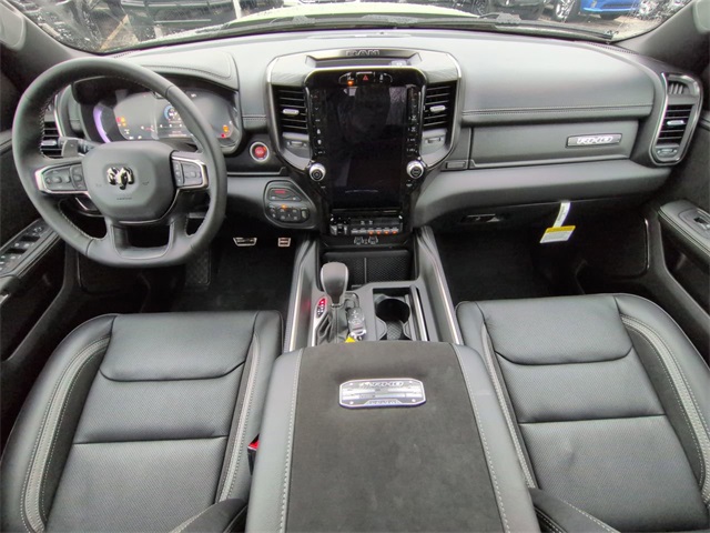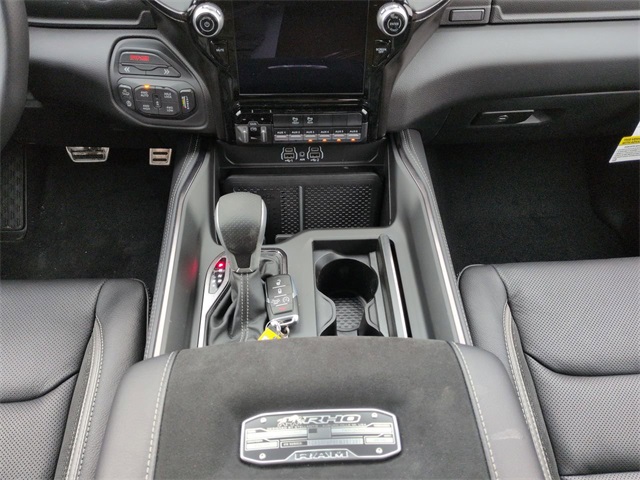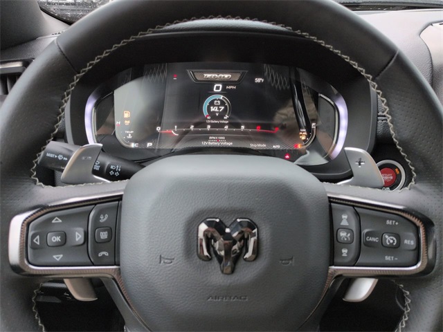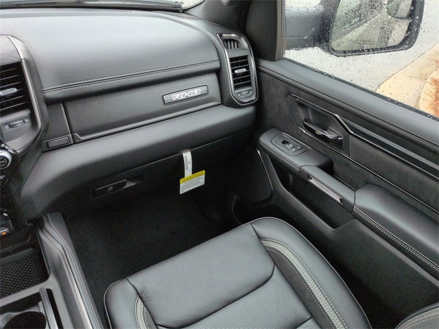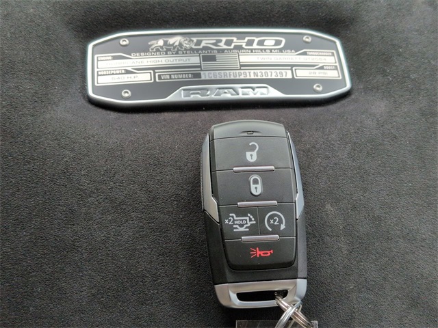Quick Order Package 22Y RHO, 10 Speakers, 3.92 Rear Axle Ratio, 4-Wheel Disc Brakes, 4G LTE Wi-Fi Hot Spot, ABS brakes, Adaptive suspension, Adjustable pedals, Air Conditioning, Alloy wheels, AM/FM radio, Apple CarPlay/Android Auto, Auto High-beam Headlights, Auto Power-Folding Mirrors, Auto-dimming door mirrors, Auto-Dimming Exterior Driver Mirror, Auto-dimming Rear-View mirror, Automatic temperature control, Brake assist, Compass, Connected Travel and Traffic Services, Connectivity - US/Canada, Delay-off headlights, Disassociated Touchscreen Display, Driver door bin, Driver vanity mirror, Dual front impact airbags, Dual front side impact airbags, Electronic Stability Control, Exterior Mirrors Courtesy Lamps, Exterior Mirrors with Heating Element, Exterior Mirrors with Supplemental Signals, Exterior Parking Camera Rear, Flareside Box, Front anti-roll bar, Front Bucket Seats, Front Center Armrest w/Storage, Front dual zone A/C, Front fog lights, Front reading lights, Front wheel independent suspension, Fully automatic headlights, Garage door transmitter, GPS Navigation, HD Radio, Heated door mirrors, Heated front seats, Heated steering wheel, Illuminated entry, Integrated Center Stack Radio, Integrated Voice Command with Bluetooth, Leather Shift Knob, Leather steering wheel, Leather Trimmed Bucket Seats, Low tire pressure warning, Navigation System, Occupant sensing airbag, Outside temperature display, Overhead airbag, Overhead console, Panic alarm, Passenger door bin, Passenger vanity mirror, Power door mirrors, Power driver seat, Power passenger seat, Power steering, Power windows, Radio data system, Radio: Uconnect 5 Navigation with 12.0" Display, Rear reading lights, Rear seat center armrest, Rear step bumper, Rear window defroster, Remote keyless entry, Security system, SiriusXM Radio Service, Speed control, Split folding rear seat, Sport steering wheel, Steering wheel mounted audio controls, Tachometer, Telescoping steering wheel, Tilt steering wheel, Traction control, Trip computer, Turn signal indicator mirrors, USB Host Flip, Variably intermittent wipers, Voltmeter, and Wheels: 18" x 9" Black Paint/Polish Aluminum.
