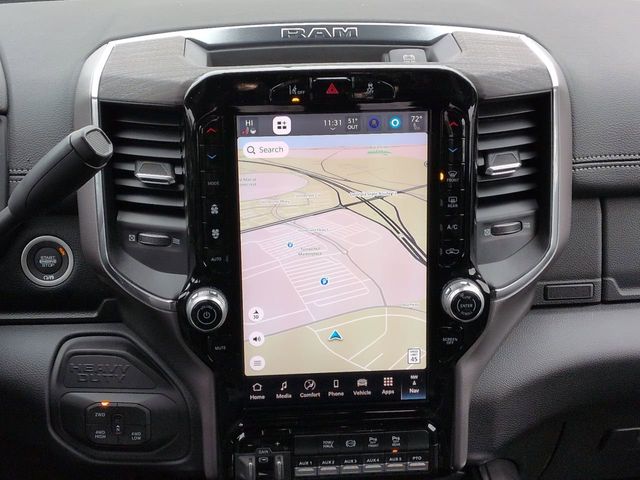 Laramie Trim Group (#1 Seat Foam Cushion, 115V Auxiliary Power Outlet, 115V Auxiliary Rear Power Outlet, 12.0" Touchscreen Display, 17 Speaker Harman/Kardon Premium Sound, 2 Way Rear Headrest Seat, 2-Door Passive Entry, Front Door Locks, 4 Way Front Headrests, 400W Inverter, 4G LTE Wi-Fi Hot Spot, Air Conditioning ATC with Dual Zone Control, Alexa Built-in, Apple CarPlay, Auto High Beam Headlamp Control, Bi-Function LED Projector Headlamps, Body Color Door Handles, Body Color Fender Flares, Bucket Seats, CHMSL Lamp with Camera, Chrome Billets/Accents Grille, Cluster 12" TFT Color Display, Connected Travel and Traffic Services, Connectivity - US/Canada, Courtesy Lamps, Digital Rearview Mirror, Disassociated Touchscreen Display, Dual Glove Boxes, Dual Wireless Charging Pad, Foam Bottle Insert (door Trim Panel), Folding Flat Load Floor Storage, For Details, Visit DriveUconnect.com, For More Info, Call 800-643-2112, Front Door Accent Lighting, Front Seat Back Map Pockets, Full Length Upgraded Floor Console, Global Telematics Box Module, Glove Box Lamp, Google Android Auto, GPS Antenna Input, GPS Navigation, HD Radio, Heated 2nd Row Seats, High Back Seats, Highline Door Trim Panel, Integrated Voice Command with Bluetooth, Leather Trimmed Bucket Seats, LED Daytime Running Headlamps, LED Dome Lamp with on/Off Switch, LED Interior Lighting, Locking Lower Glove Box, Luxury Steering Wheel, Media Hub with 2 Charge Only USBs, Mirror-Mounted Aux Reverse Lamps, Off-Road Information Pages, Overhead LED Lamps, Painted Front Bumper, Painted I/P Bezels with Premium Film, ParkSense Front/Rear Park Assist System, Power 2-Way Passenger Lumbar Adjust, Power Adjust 8-Way Driver Seat, Power Adjust 8-Way Front Passenger Seat, Power Rear Sliding Window, Premium Overhead Console, Radio: Uconnect 5 Navigation with 12.0" Display, Rain Sensitive Windshield Wipers, Rear 60/40 Folding Seat, Rear Door Accent Lighting, Rear Window Defroster, Remote Start System, SiriusXM Radio Service, SiriusXM with 360L, Steering Wheel Mounted Audio Controls, Sun Visors with Illuminated Vanity Mirrors, Temperature and Compass Gauge, Trailer Tow Pages, Universal Garage Door Opener, Ventilated Front Seats, and Wheels: 18" x 8.0" Diamond Cut Aluminum), Quick Order Package 25Z Big Horn (40/20/40 Split Bench Seat, Acoustic Front Door Glass, Black Exterior Mirrors, Black Power Heated Fold Telescope Mirrors, Black-Out Tape, Body Insulation, Bright Front Bumper, Center Hub, Chrome Grille Surround, Cloth 40/20/40 Bench Seat, Exterior Mirrors Courtesy Lamps, Exterior Mirrors with Heating Element, Exterior Mirrors with Supplemental Signals, Front Armrest with Cupholders, Manual Adjust 4-Way Driver Seat, Manual Adjust 4-Way Front Passenger Seat, Manual Folding Exterior Mirrors, Manual Telescoping Mirrors, Matte Black Mesh Grille with Chrome, Mirror Running Lights, Painted I/P Bezels with Hydrographics, Passenger Sun Visor with Illuminated Mirror, Power Adjust Mirrors, Power-Adjustable Convex Aux Mirrors, Premium Vinyl Door Trim with Map Pocket, RAM Door Badges, Rear Folding Seat, Remote USB Port - Charge Only, Satin Chrome Key Fob, Storage Tray, Tinted Acoustic Windshield Glass, Trailer Brake Control, Trailer Light Check, Traveler/Mini Trip Computer, and Wheels: 18" x 8.0" Polished Aluminum), Safety Group (Adaptive Steering System, Drowsy Driver Detection, Lane Keep Assist, and Security Alarm), 11.50" Dual Wheels Rear Axle, 4-Wheel Disc Brakes, 6 Speakers, 6000# Front Axle with Hub Extension, ABS brakes, Air Conditioning, AM/FM radio: SiriusXM, Apple CarPlay/Android Auto, Black Wheel Center Hub, Compass, Delay-off headlights, Driver door bin, Dual front impact airbags, Dual Rear Wheels, Electronic Stability Control, Emergency communication system: RAM Connect, Fro Price includes: $2500 - 2026 National Bonus Cash . Exp. 0