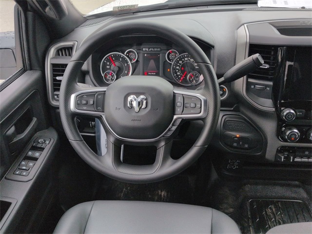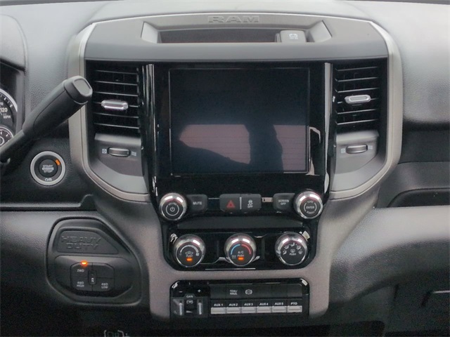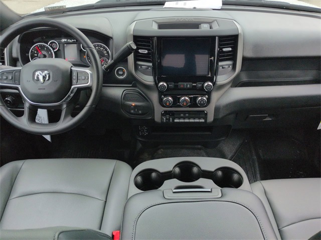Chrome Appearance Group (19.5" x 6.0" Steel Wheels, Bright Front Bumper, Center Hub, Chrome Grille Surround, and Matte Black Mesh Grille with Chrome), Quick Order Package 25A Tradesman, Tradesman Level 1 Equipment Group (Black Exterior Mirrors, Exterior Mirrors Courtesy Lamps, Exterior Mirrors with Heating Element, Exterior Mirrors with Supplemental Signals, Manual Folding Exterior Mirrors, Manuarl Telescoping Mirrors, Mirror Power Heat Fold Telescope Black, Mirror Running Lights, Power Adjust Mirrors, Power-Adjustable Convex Aux Mirrors, Rear Window Defroster, Trailer Brake Control, and Trailer Light Check), 2 Way Rear Headrest Seat, 4-Wheel Disc Brakes, 4.44 Axle Ratio, 40/20/40 Split Bench Seat, 4G LTE Wi-Fi Hot Spot, 6 Speakers, ABS brakes, Air Conditioning, AM/FM radio: SiriusXM, Apple CarPlay, Apple CarPlay/Android Auto, Compass, Connectivity - US/Canada, Delay-off headlights, Driver door bin, Dual front impact airbags, Dual rear wheels, Electronic Stability Control, Emergency communication system: RAM Connect, For Details, Visit DriveUconnect.com, Front anti-roll bar, Front Armrest with Cupholders, Front Center Armrest w/Storage, Front fog lights, Front License Plate Bracket, Front reading lights, Fully automatic headlights, Global Telematics Box Module, Google Android Auto, GPS Antenna Input, Illuminated entry, Integrated Voice Command with Bluetooth, Manual Adjust 4-Way Driver Seat, Manual Adjust 4-Way Front Passenger Seat, Occupant sensing airbag, Outside temperature display, Overhead console, Panic alarm, ParkView Rear Back Up Camera, Passenger door bin, Passenger vanity mirror, Power steering, Power Take-Off Right/Left, Power windows, Radio data system, Radio: Uconnect 5 with 8.4" Display, Rear anti-roll bar, Rear Folding Seat, Remote keyless entry, Remote USB Port - Charge Only, Speed control, Storage Tray, Tachometer, Temperature and Compass Gauge, Tilt steering wheel, Traction control, Variably intermittent wipers, Voltmeter, and Wheels: 19.5" x 6.0" Black Painted SteeL.