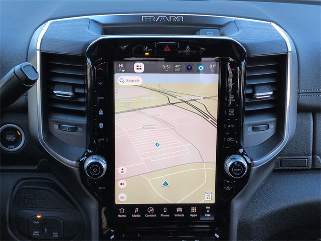 Cold Weather Group (Engine Block Heater and MOPAR Winter Front Grille Cover), Laramie Trim Group (#1 Seat Foam Cushion, 115V Auxiliary Power Outlet, 115V Auxiliary Rear Power Outlet, 12.0" Touchscreen Display, 17 Speaker Harman/Kardon Premium Sound, 2 Way Rear Headrest Seat, 2-Door Passive Entry, Front Door Locks, 4 Way Front Headrests, 400W Inverter, 4G LTE Wi-Fi Hot Spot, Air Conditioning ATC with Dual Zone Control, Alexa Built-in, Apple CarPlay, Auto High Beam Headlamp Control, Bi-Function LED Projector Headlamps, Body Color Door Handles, Body Color Fender Flares, Bucket Seats, Center Hub, CHMSL Lamp with Camera, Chrome Billets/Accents Grille, Cluster 12" TFT Color Display, Connected Travel and Traffic Services, Connectivity - US/Canada, Courtesy Lamps, Digital Rearview Mirror, Disassociated Touchscreen Display, Dual Glove Boxes, Dual Wireless Charging Pad, Foam Bottle Insert (door Trim Panel), Folding Flat Load Floor Storage, For Details, Visit DriveUconnect.com, For More Info, Call 800-643-2112, Front Door Accent Lighting, Front Seat Back Map Pockets, Full Length Upgraded Floor Console, Global Telematics Box Module, Glove Box Lamp, Google Android Auto, GPS Antenna Input, GPS Navigation, HD Radio, Heated Front Seats, Heated Second Row Seats, Heated Steering Wheel, High Back Seats, Highline Door Trim Panel, Integrated Voice Command with Bluetooth, Leather Trimmed Bucket Seats, LED Daytime Running Headlamps, LED Dome Lamp with on/Off Switch, LED Interior Lighting, Locking Lower Glove Box, Luxury Steering Wheel, Media Hub with 2 Charge Only USBs, Off-Road Info Pages, Overhead LED Lamps, Painted Front Bumper, Painted I/P Bezels with Premium Film, ParkSense Front/Rear Park Assist System, Power 2-Way Driver Lumbar Adjust, Power 2-Way Passenger Lumbar Adjust, Power Adjust 8-Way Driver Seat, Power Adjust 8-Way Front Passenger Seat, Premium Overhead Console, Radio: Uconnect 5 Navigation with 12.0" Display, Rain Sensitive Windshield Wipers, Rear 60/40 Folding Seat, Rear Door Accent Lighting, Rear Power Sliding Window, Rear Window Defroster, Remote Start System, SiriusXM Radio Service, SiriusXM with 360L, Steering Wheel Mounted Audio Controls, Sun Visors with Illuminated Vanity Mirrors, Temperature and Compass Gauge, Trailer Tow Pages, Universal Garage Door Opener, Ventilated Front Seats, and Wheels: 19.5" x 6.0" Forged Aluminum Polished), Quick Order Package 25Z Big Horn (19.5" x 6.0" Steel Wheels, 40/20/40 Split Bench Seat, Acoustic Front Door Glass, Black Exterior Mirrors, Black-Out Tape, Body Insulation, Bright Front Bumper, Chrome Grille Surround, Cloth 40/20/40 Bench Seat, Exterior Mirrors Courtesy Lamps, Exterior Mirrors with Heating Element, Exterior Mirrors with Supplemental Signals, Front Armrest with Cupholders, Manual Adjust 4-Way Driver Seat, Manual Adjust 4-Way Front Passenger Seat, Manual Folding Exterior Mirrors, Manuarl Telescoping Mirrors, Matte Black Mesh Grille with Chrome, Mirror Power Heat Fold Telescope Black, Mirror Running Lights, Painted I/P Bezels with Hydrographics, Passenger Sun Visor with Illuminated Mirror, Power Adjust Mirrors, Power-Adjustable Convex Aux Mirrors, Premium Vinyl Door Trim with Map Pocket, RAM Door Badges, Rear Folding Seat, Remote USB Port - Charge Only, Satin Chrome Key Fob, Storage Tray, Tinted Acoustic Windshield Glass, Trailer Brake Control, Trailer Light Check, and Traveler/Mini Trip Computer), Safety Group (Adaptive Steering System, Drowsy Driver Detection, Lane Keep Assist, and Security Alarm), 4-Wheel Disc Brakes, 4.44 Axle Ratio, 6 Speakers, ABS brakes, Air Conditioning, AM/FM radio: SiriusXM, Apple CarPlay/Android Auto, Compass, Delay-off headlights, Driver door bin, Dual front impact airbags, Dual rear wheels, Electronic Stability Control, Emergency communication system: RAM Connect, Front anti-roll bar, Fr