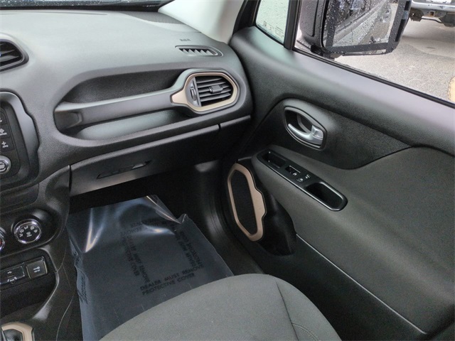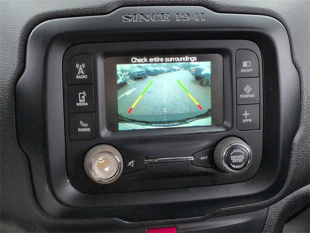 This 2016 Jeep Renegade Sport in Black features: 4D Sport Utility, 2.4L I4 MultiAir, 9-Speed 948TE Automatic, FWD, **LOCAL TRADE**, 16" x 6.5" Aluminum Wheels, 4-Wheel Disc Brakes, 5.0" Touchscreen Display, 6 Speakers, ABS brakes, Air Conditioning, Backup Camera, Black Side Roof Rails, Brake assist, Cloth Low-Back Bucket Seats, Compass, Deep Tint Sunscreen Glass, Delay-off headlights, Electronic Stability Control, Exterior Mirrors w/Heating Element, Four wheel independent suspension, Front Bucket Seats, Front Center Armrest, GPS Antenna Input, Hill Start Assist, Illuminated entry, Integrated Voice Command w/Bluetooth, Low tire pressure warning, No Satellite Coverage HI/AK, Outside temperature display, Overhead console, Panic alarm, ParkView Rear Back Up-Camera, Passive Entry Keyless Go Package, Passive Entry/Keyless Go, Power & Air Group, Power Heated Mirrors, Power Mirror Package, Power Package, Power steering, Power windows, Preferred Equipment Package, Push Button Start, Quick Order Package 27A, Radio data system, Radio: Uconnect 5.0, Rear window wiper, Remote keyless entry, Remote Start, Remote Start Package, Remote Start System, Remote USB Port - Charge Only, SIRIUS Satellite Radio Sound Group, SIRIUSXM Satellite Radio, Speed Control, Split folding rear seat, Spoiler, Sport Appearance Group, Steering wheel mounted audio controls, Telescoping steering wheel, Tilt steering wheel, Traction control, Trip computer, Uconnect 5.0 Radio w/Back-Up Camera.