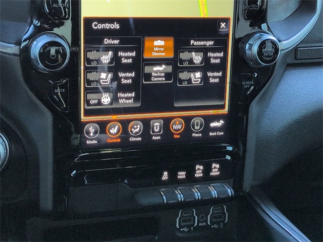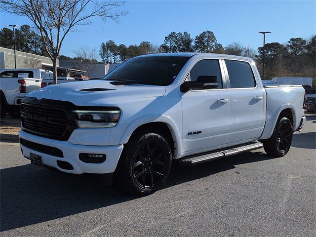 This 2021 Ram 1500 Laramie in Bright White Clearcoat features: 4D Crew Cab, HEMI 5.7L V8 Multi Displacement VVT, 8-Speed Automatic, 4WD, #1 Seat Foam Cushion, 10 Speakers, 12" LCD Productivity Touchscreen, 12" Touchscreen Display, 3 Rear Seat Head Restraints, 33 Gallon Fuel Tank, 4 Way Front Headrests, 4-Wheel Disc Brakes, 48V Belt Starter Generator, 4G LTE Wi-Fi Hot Spot, 4G WiFi Hotspot Telematics, 5-Year SiriusXM Travel Link Service, ABS brakes, Accent Color Premium Power Mirrors, Adjustable pedals, AM/FM radio: SiriusXM, Anti-Spin Differential Rear Axle, Apple CarPlay/Android Auto, Audio memory, Auto Dimming Exterior Passenger Mirror, Auto High Beam Headlamp Control, Auto-dimming Rear-View mirror, Automatic temperature control, Backup Camera, Bed Utility Group, Black Exterior Truck Badging, Black Headlamp Bezels, Black Interior Accents, Black Painted Exterior Mirrors Caps, Body Color Door Handles, Body Color Front Bumper, Body Color Rear Bumper w/Step Pads, Brake assist, Bucket Seats, Center Console Parts Module, Cold Weather Package, Compass, Delay-off headlights, Disassociated Touchscreen Display, Dome Dual LED Reading Lamp, Driver Seat Memory, Dual Exhaust w/Black Tips, Dual-Pane Panoramic Sunroof, Electronic Stability Control, Foam Bottle Insert (Door Trim Panel), For More Info, Call 800-643-2112, Front & Rear Park Assist, Front Center Armrest w/Storage, Front dual zone A/C, Front fog lights, Front Pedestrian Braking, Front Seat Back Map Pockets, Front wheel independent suspension, Full Length Upgraded Floor Console, Full Speed Auto Collision Warning Plus, Fully automatic headlights, Garage door transmitter, Google Android Auto, GPS Antenna Input, GPS Navigation, Grille Surround 3 Black Texture 2 Black, harman/kardon 19 Speaker Premium Sound, HD Radio, Heated door mirrors, Heated Front Seats, Heated Second Row Seats, Heated Steering Wheel, Illuminated entry, Integrated Center Stack Radio, Integrated Voice Command w/Bluetooth, Laramie Level B Equipment Group, Leather steering wheel, Leather Trim 40/20/40 Bench Seat, Leather Trimmed Bucket Seats, LED Dome/Reading Lamp, Low tire pressure warning, Memory Package, Memory seat, MOPAR 4 Adjustable Cargo Tie-Down Hooks, Mopar Black Tubular Side Steps, MOPAR Deployable Bed Step, MOPAR Spray In Bedliner, Multimedia Package, Navigation System, Night Edition, Outside temperature display, Overhead console, Panoramic Sunroof/Moonroof, Parking Sensors, ParkSense Front/Rear Park Assist w/Stop, ParkView Rear Back-Up Camera, Pedal memory, Pick-Up Box Lighting, Power 4-Way Driver Lumbar Adjust, Power 4-Way Passenger Lumbar Adjust, Power 8-Way Driver & Passenger Seats, Power door mirrors, Power Mirror Package, Power Package, Power windows, Preferred Equipment Package, Premium Audio Package, Premium Sound Package, Push Button Start, Quick Order Package 27H Laramie, Radio data system, Radio: Uconnect 12 w/Navigation, Radio: Uconnect 4C Nav w/8.4" Display, Rain Sensitive Windshield Wipers, Rear 60/40 Folding Split Recline Seat, Rear step bumper, Rear Underseat Compartment Storage, Remote keyless entry, Remote Start, Remote Tailgate Release, Reverse Brake Assist, Reverse Sensing, SiriusXM Satellite Radio, SiriusXM Traffic Plus, SiriusXM Travel Link, SiriusXM w/360L, Split folding rear seat, Sport Performance Hood, Steering wheel mounted audio controls, Tailgate Ajar Warning Lamp, Telescoping steering wheel, Tilt steering wheel, Traction control, Trip computer, Turn signal indicator mirrors, USB Host Flip, Ventilated Front Seats, Ventilated front seats, Wheels: 22" x 9" Forged Aluminum, Wireless Charging Pad.
