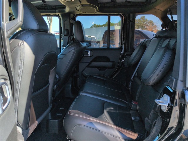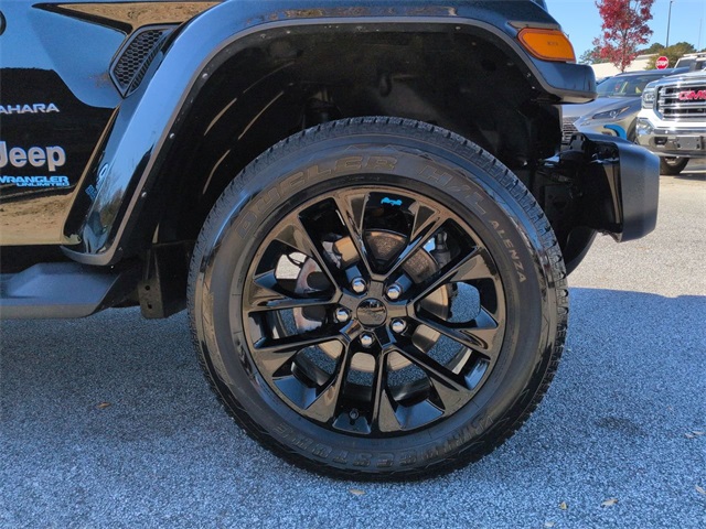 This 2022 Jeep Wrangler Unlimited Sahara 4xe in Black Clearcoat features: 4D Sport Utility, 2.0L I4 DOHC, 8-Speed Automatic, 4WD, 4-Wheel Disc Brakes, 9 Speakers, ABS brakes, Alloy wheels, AM/FM radio, Android Auto, Apple Carplay, Apple CarPlay/Android Auto, Auto LED Headlights, Auto-dimming Rear-View mirror, Automatic temperature control, Backup Camera, Bluetooth w/ Audio Streaming, Brake assist, Compass, Delay-off headlights, Electronic Stability Control, Emergency communication system: SiriusXM Guardian, Front Bucket Seats, Front Center Armrest w/Storage, Front dual zone A/C, Front fog lights, Fully automatic headlights, Garage door transmitter, Heated door mirrors, Hill Start Assist, Illuminated entry, Integrated roll-over protection, Leather Shift Knob, Leather steering wheel, Low tire pressure warning, Navigation System, Outside temperature display, Panic alarm, ParkView Rear Back-Up Camera, Passenger door bin, Power door mirrors, Power steering, Power windows, Preferred Equipment Package, Premium McKinley Trimmed Seats, Quick Order Package 29P, Radio data system, Radio: Uconnect 4C Nav w/8.4" Display, Rear seat center armrest, Remote keyless entry, Security system, Speed control, Split folding rear seat, Sport Suspension, Steering wheel mounted audio controls, Telescoping steering wheel, Tilt steering wheel, Traction control, Trip computer, Variably intermittent wipers, Wheels: 20" x 8" Fully Painted Aluminum.
