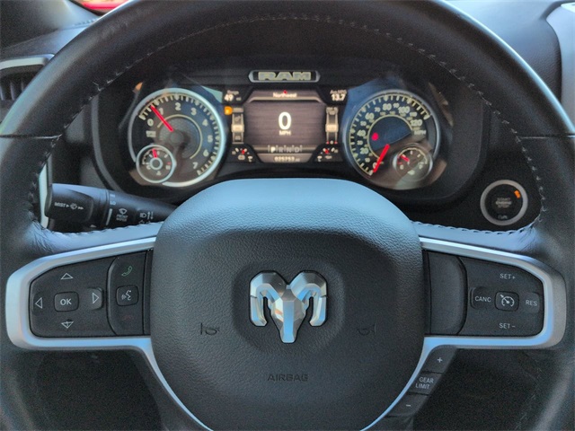 This 2022 Ram 1500 Big Horn/Lone Star in Delmonico Red Pearlcoat features: 4D Crew Cab, HEMI 5.7L V8 Multi Displacement VVT, 8-Speed Automatic, 4WD, 115V Auxiliary Power Outlet, 115V Auxiliary Rear Power Outlet, 2nd Row In Floor Storage Bins, 3 Rear Seat Head Restraints, 4 Way Front Headrests, 4-Wheel Disc Brakes, 400W Inverter, 48V Belt Starter Generator, 4G LTE Wi-Fi Hot Spot, 4G WiFi Hotspot Telematics, 8.4" Touchscreen Display, ABS brakes, Air Conditioning ATC w/Dual Zone Control, All Plant-Installed Decals, All R1 High Radios, All Radio Equipped Vehicles, Android Auto, Apple Carplay, Auto-Dimming Exterior Driver Mirror, Auto-Dimming Rear-View Mirror, Backup Camera, Big Horn Badge, Big Horn Level 2 Equipment Group, Black Exterior Mirrors, Black Interior Accents, Black Premium Power Mirrors, Bluetooth Handsfree Phone & Audio, Bluetooth w/ Audio Streaming, Body Color Exterior Mirrors, Body Color Front Bumper, Body Color Premium Power Mirrors, Body Color Rear Bumper w/Step Pads, Brake assist, Bucket Seats, Class IV Receiver Hitch, Cluster 7.0" TFT Color Display, Compass, Connected Travel & Traffic Services, Connectivity - US/Canada, Convex Wide-Angle Mirror Insert, Delay-off headlights, Delete LED Lamp - Floor Console Bin, Deluxe Cloth Bucket Seats, Disassociated Touchscreen Display, Electronic Stability Control, Emergency communication system: SiriusXM Guardian, Exterior Mirrors Courtesy Lamps, Exterior Mirrors w/Heating Element, Exterior Mirrors w/Supplemental Signals, For Details, Visit DriveUconnect.com, Front Center Armrest w/Storage, Front fog lights, Front Seat Back Map Pockets, Front wheel independent suspension, Full Length Floor Console, Fully automatic headlights, Global Telematics Box Module (TBM), Glove Box Lamp, Google Android Auto, GPS Antenna Input, GPS Navigation, HD Radio, Heated Front Seats, Heated Steering Wheel, Heavy-Duty Engine Cooling, Hill Start Assist, Illuminated entry, Integrated Center Stack Radio, Integrated Voice Command w/Bluetooth, Leather steering wheel, Low tire pressure warning, Manual Adjust 4-Way Front Passenger Seat, Media Hub w/2 Charge Only USBs, Navigation System, Outside temperature display, Overhead console, Panic alarm, Parking Sensors, ParkSense Front/Rear Park Assist w/Stop, ParkView Rear Back-Up Camera, Power 2-Way Driver Lumbar Adjust, Power 8-Way Driver Seat, Power Adjustable Pedals, Power door mirrors, Power Mirror Package, Power Package, Power Sliding Rear Window, Power-Folding Mirrors, Preferred Equipment Package, Quick Order Package 25Z Big Horn, Radio data system, Radio: Uconnect 5 Nav w/8.4" Display, Radio: Uconnect 5 W w/8.4" Display, Rear 60/40 Folding Seat, Rear Center Armrest, Rear Dome w/On/Off Switch Lamp, Rear Power Sliding Window, Rear step bumper, Rear Window Defroster, Remote keyless entry, Remote Start System, Reverse Brake Assist, Reverse Sensing, Security Alarm, SiriusXM w/360L, Speed control, Split folding rear seat, Sport Appearance Package, Sport Decal, Steering wheel mounted audio controls, Sun Visors w/Illuminated Vanity Mirrors, Telescoping steering wheel, Tilt steering wheel, Tow Package, Traction control, Trailer Package, Trip computer, Universal Garage Door Opener, USB Host Flip, Variably intermittent wipers, Wheels: 20" x 9" Aluminum Chrome Clad (WRK).