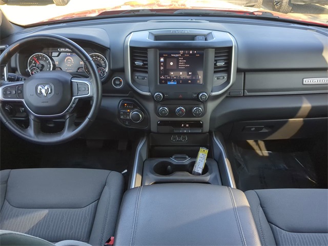 This 2022 Ram 1500 Big Horn/Lone Star in Flame Red Clearcoat features: 4D Crew Cab, 3.6L V6 24V VVT, 8-Speed Automatic, 4WD, 2nd Row In Floor Storage Bins, 3 Rear Seat Head Restraints, 4 Way Front Headrests, 4-Wheel Disc Brakes, 4G LTE Wi-Fi Hot Spot, 8.4" Touchscreen Display, ABS brakes, Android Auto, Anti-Spin Differential Rear Axle, Apple CarPlay, Apple Carplay, Auto-Dimming Exterior Driver Mirror, Auto-Dimming Rear-View Mirror, Backup Camera, Big Horn Badge, Big Horn Level 1 Equipment Group, Black Exterior Mirrors, Black Premium Power Mirrors, Bluetooth Handsfree Phone & Audio, Bluetooth w/ Audio Streaming, Brake assist, Class IV Receiver Hitch, Cluster 7.0" TFT Color Display, Compass, Connectivity - US/Canada, Convex Wide-Angle Mirror Insert, Delay-off headlights, Electronic Stability Control, Emergency communication system: SiriusXM Guardian, Exterior Mirrors Courtesy Lamps, Exterior Mirrors w/Heating Element, Exterior Mirrors w/Supplemental Signals, For Details, Visit DriveUconnect.com, Front Center Armrest w/Storage, Front fog lights, Front wheel independent suspension, Fully automatic headlights, Global Telematics Box Module (TBM), Glove Box Lamp, Google Android Auto, GPS Antenna Input, Heated door mirrors, Heavy-Duty Engine Cooling, Hill Start Assist, Illuminated entry, Integrated Center Stack Radio, Integrated Voice Command w/Bluetooth, Leather steering wheel, Low tire pressure warning, Outside temperature display, Overhead console, Panic alarm, ParkView Rear Back-Up Camera, Power 2-Way Driver Lumbar Adjust, Power 8-Way Driver Seat, Power Adjustable Pedals, Power door mirrors, Power Mirror Package, Power Package, Power Sliding Rear Window, Power-Folding Mirrors, Push Button Start, Quick Order Package 23Z Big Horn, Radio data system, Radio: Uconnect 5 W w/8.4" Display, Rear 60/40 Folding Seat, Rear Dome w/On/Off Switch Lamp, Rear Power Sliding Window, Rear step bumper, Rear Window Defroster, Remote keyless entry, Remote Start, Remote Start System, SiriusXM Radio Service, SiriusXM Satellite Radio, Speed control, Steering wheel mounted audio controls, Sun Visors w/Illuminated Vanity Mirrors, Telescoping steering wheel, Tilt steering wheel, Tow Package, Traction control, Trailer Package, Trip computer, Universal Garage Door Opener, USB Host Flip, Variably intermittent wipers, Wheels: 20" x 9" Aluminum Chrome Clad (WRK).