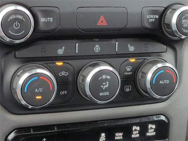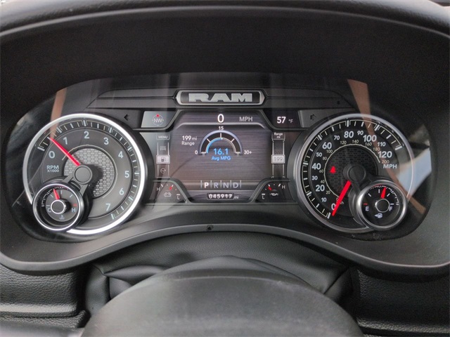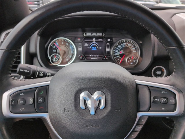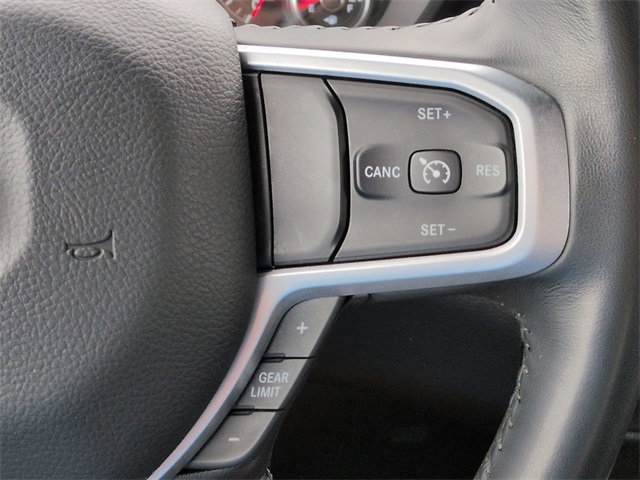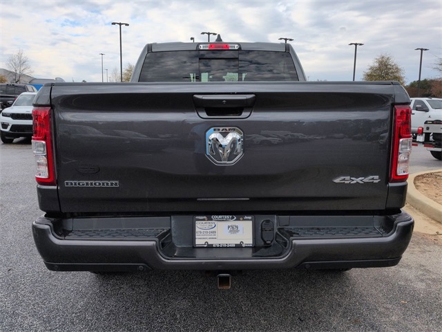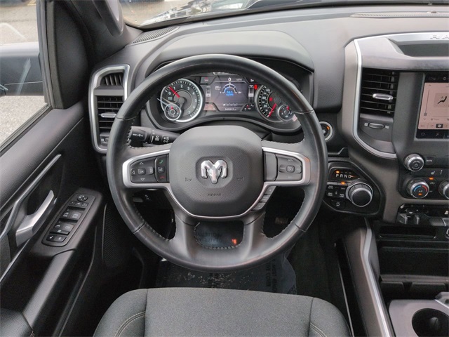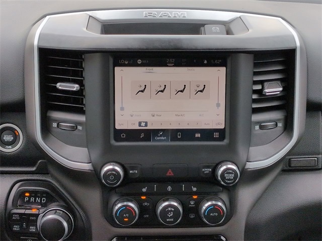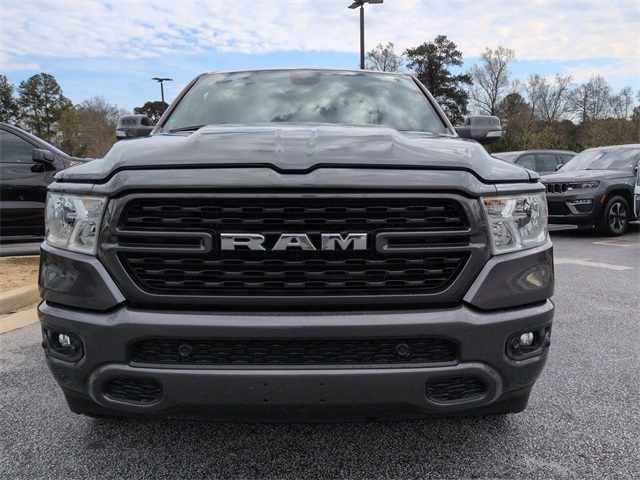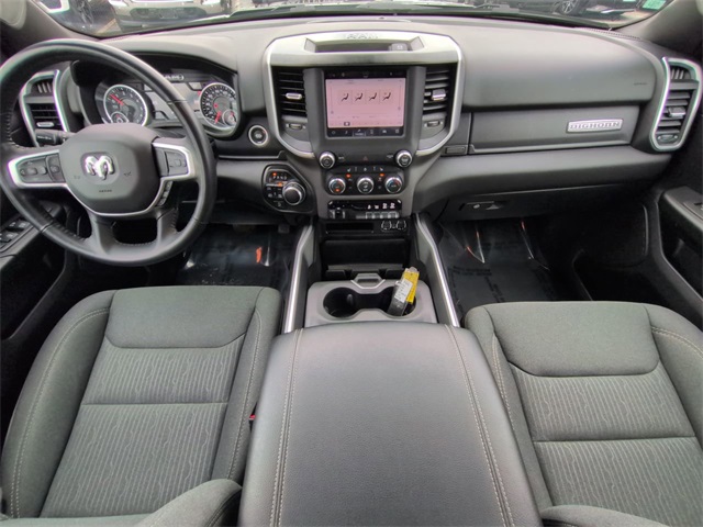 This 2022 Ram 1500 Big Horn/Lone Star in Granite Crystal Metallic Clearcoat features: 4D Crew Cab, 3.6L V6 24V VVT, 8-Speed Automatic, 4WD, 115V Auxiliary Power Outlet, 115V Auxiliary Rear Power Outlet, 2nd Row In Floor Storage Bins, 3 Rear Seat Head Restraints, 4 Way Front Headrests, 4-Wheel Disc Brakes, 400W Inverter, 4G LTE Wi-Fi Hot Spot, 8.4" Touchscreen Display, 8" Color Touchscreen, ABS brakes, Air Conditioning ATC w/Dual Zone Control, All Plant-Installed Decals, Android Auto, Apple CarPlay, Apple Carplay, Auto-Dimming Exterior Driver Mirror, Auto-Dimming Rear-View Mirror, Backup Camera, Big Horn Badge, Big Horn Level 2 Equipment Group, Black Exterior Mirrors, Black Interior Accents, Black Premium Power Mirrors, Bluetooth Handsfree Phone & Audio, Bluetooth w/ Audio Streaming, Body Color Exterior Mirrors, Body Color Front Bumper, Body Color Premium Power Mirrors, Body Color Rear Bumper w/Step Pads, Brake assist, Bridgestone Brand Tires, Bucket Seats, Class IV Receiver Hitch, Cluster 7.0" TFT Color Display, Cold Weather Package, Connectivity - US/Canada, Convex Wide-Angle Mirror Insert, Delay-off headlights, Delete LED Lamp - Floor Console Bin, Deluxe Cloth Bucket Seats, Electronic Stability Control, Emergency communication system: SiriusXM Guardian, Exterior Mirrors Courtesy Lamps, Exterior Mirrors w/Heating Element, Exterior Mirrors w/Supplemental Signals, Front Center Armrest w/Storage, Front fog lights, Front Seat Back Map Pockets, Front wheel independent suspension, Full Length Floor Console, Fully automatic headlights, Global Telematics Box Module (TBM), Glove Box Lamp, Google Android Auto, GPS Antenna Input, Heated door mirrors, Heated Front Seats, Heated Steering Wheel, Heavy-Duty Engine Cooling, Hill Start Assist, Illuminated entry, Integrated Center Stack Radio, Integrated Voice Command w/Bluetooth, Leather steering wheel, Low tire pressure warning, Manual Adjust 4-Way Front Passenger Seat, Media Hub w/2 Charge Only USBs, Outside temperature display, Overhead console, Panic alarm, Parking Sensors, ParkSense Front/Rear Park Assist w/Stop, ParkView Rear Back-Up Camera, Power 2-Way Driver Lumbar Adjust, Power 8-Way Driver Seat, Power Adjustable Pedals, Power door mirrors, Power Mirror Package, Power Package, Power Sliding Rear Window, Power-Folding Mirrors, Quick Order Package 23Z Big Horn, Radio data system, Radio: Uconnect 5 W w/8.4" Display, Rear 60/40 Folding Seat, Rear Center Armrest, Rear Dome w/On/Off Switch Lamp, Rear Power Sliding Window, Rear seat center armrest, Rear step bumper, Rear Window Defroster, Remote keyless entry, Remote Start, Remote Start System, Reverse Brake Assist, Reverse Sensing, Security Alarm, SiriusXM Radio Service, SiriusXM Satellite Radio, Speed control, Split folding rear seat, Sport Appearance Package, Sport Decal, Steering wheel mounted audio controls, Sun Visors w/Illuminated Vanity Mirrors, Telescoping steering wheel, Tow Package, Traction control, Trailer Brake Control, Trailer Package, Trip computer, Universal Garage Door Opener, USB Host Flip, Variably intermittent wipers, Wheels: 20" x 9" Aluminum Chrome Clad (WRK).