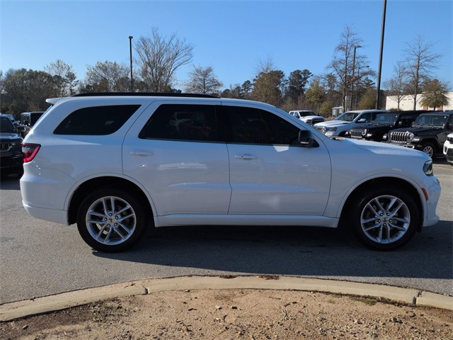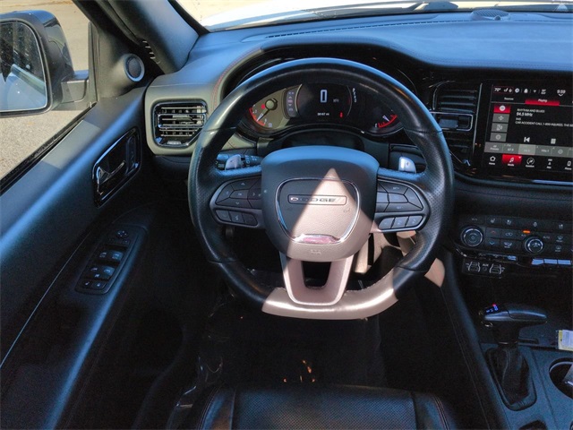 This 2023 Dodge Durango GT in White Knuckle Clearcoat features: 4D Sport Utility, 3.6L V6 24V VVT, 8-Speed Automatic, AWD, 10.1" Portriat Touchscreen, 10.1" Touchscreen Display, 115V Auxiliary Power Outlet, 180 Amp Alternator, 2nd Row Fold/Tumble Captain Chairs, 2nd Row Mini Console w/Cupholders, 3rd Row Floor Mat & Mini Console, 3rd Row Seating, 4-Wheel Disc Brakes, 4G LTE Wi-Fi Hot Spot, 506 Watt Amplifier, 6-Passenger Seating, 7 & 4 Pin Wiring Harness, 9 Alpine Amplified Speakers w/Subwoofer, ABS brakes, Adaptive Cruise Control, Adaptive Cruise Control w/Stop, Advanced Brake Assist, Android Auto, Apple CarPlay, Apple Carplay, Apple CarPlay/Android Auto, Auto High Beam Headlamp Control, Auto-Dimming Exterior Driver Mirror, Auto-dimming Rear-View mirror, Automatic temperature control, Backup Camera, Black Roof Rails, Blind Spot Monitoring, Bluetooth w/ Audio Streaming, Brake assist, Bright Cargo Area Scuff Pads, Bright Front Door Sill Scuff Pads, Class IV Receiver Hitch, Cold Weather Package, Compass, Connected Travel & Traffic Services, Delay-off headlights, Disassociated Touchscreen Display, Dual Remote USB Port - Charge Only, Electronic Stability Control, Exterior Mirrors w/Heating Element, Exterior Mirrors w/Memory, Exterior Mirrors w/Supplemental Signals, Floor Console w/Leather Armrest, Four wheel independent suspension, Front Bucket Seats, Front dual zone A/C, Front Pedestrian Braking, Full Speed Auto Collision Warning Plus, Full Speed Forward Collision Warning Plus, Fully automatic headlights, Garage door transmitter, Gloss Black Exterior Mirrors, Google Android Auto, GPS Antenna Input, GPS Navigation, HD Radio, Heated front seats, Heated Second Row Seats, Heated steering wheel, Heavy-Duty Engine Cooling, Illuminated entry, Integrated Center Stack Radio, Integrated Roof Rail Crossbars, Integrated Voice Command w/Bluetooth, Lane Departure Warning, Lane Departure Warning Plus, Leather Seats, Leather steering wheel, Leather Trimmed Bucket Seats, Leather Wrapped Door Panels, LED Auxiliary Low Beam & Turn Signal, LED Foglights, Low tire pressure warning, Multi Zone Climate Control, Navigation System, Outside temperature display, Overhead console, Panic alarm, Parking Sensors, ParkSense Front/Rear Park Assist w/Stop, ParkView Rear Back-Up Camera, Post Collision Braking, Power 6x9 Multi-Function Foldaway Mirrors, Power 8-Way Driver Memory 8-Way Passenger Seats, Power Driver/Passenger 4-Way Lumbar Adjust, Power Liftgate, Power Mirror Package, Power Sunroof, Power Tilt & Telescopic Steering Column, Premium Audio Package, Premium Door Trim Panel, Premium Instrument Panel, Premium LED Fog Lamps, Premium Sound Package, Quick Order Package 2BH GT Premium, Radio data system, Radio: Uconnect 5 Nav w/10.1" Display, Radio/Driver Seat/Mirrors Memory, Rain Sensitive Windshield Wipers, Rear air conditioning, Rear Climate Package, Rear Cross Traffic Alert, Rear Load Leveling Suspension, Rear seat center armrest, Rear window wiper, Red Accent Stitching, Remote keyless entry, Reverse Brake Assist, Reverse Sensing, Safety Package, Security Alarm, SiriusXM Guardian - Included Trial (B), SiriusXM Satellite Radio, SiriusXM w/360L, Speed-sensing steering, Speed-Sensitive Wipers, Split folding rear seat, Sport steering wheel, Steering wheel mounted audio controls, Sun Visors w/Illuminated Vanity Mirrors, Sunroof/Moonroof, Telescoping steering wheel, Tilt steering wheel, Traction control, Trailer Brake Control, Trip computer, USB Host Flip, Ventilated Front Seats, Wheels: 20" x 8.0" Fine Silver, Wireless Charging Pad, Wireless Charging Pad.