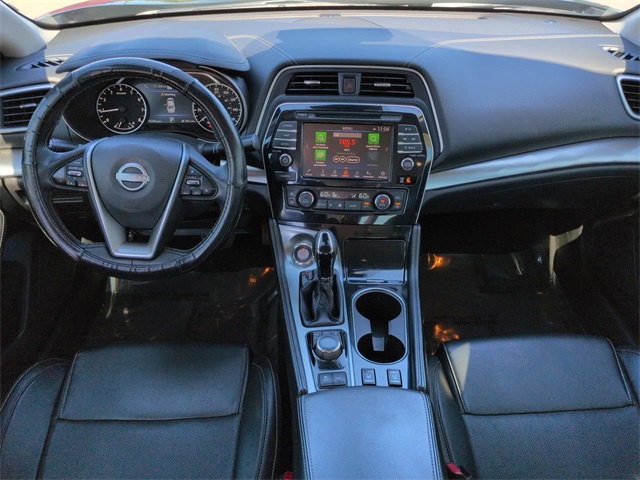 This 2023 Nissan Maxima SV in Super Black features: 4D Sedan, 3.5L V6 DOHC 24V, CVT with Xtronic, FWD, **LOCAL TRADE**, 4-Wheel Disc Brakes, 8 Speakers, 8" Color Touchscreen, ABS brakes, AM/FM radio: SiriusXM, Android Auto, Apple Carplay, Auto Emergency Braking, Auto High-beam Headlights, Auto LED Headlights, Auto-dimming Rear-View mirror, Automatic temperature control, Backup Camera, Blind Spot Monitoring, Blind Spot Warning, Bluetooth w/ Audio Streaming, Brake assist, Compass, Delay-off headlights, Driver Attention Warning, Electronic Stability Control, Emergency communication system: NissanConnect Services, First Aid Kit, Four wheel independent suspension, Foward Collison Alert, Front dual zone A/C, Front Zero Gravity Heated Seats, Fully automatic headlights, Heated door mirrors, Heated front seats, Illuminated entry, Lane Departure Warning, Leather Seats, Leather-Appointed Seat Trim, Low tire pressure warning, Navigation system: Nissan Door to Door Connected Navigation, NissanConnect featuring Apple CarPlay and Android Auto, Outside temperature display, Overhead console, Panic alarm, Parking Sensors, Power door mirrors, Power driver seat, Power Mirror Package, Power Package, Power passenger seat, Power steering, Power windows, Push Button Start, Radio data system, Rear Cross Traffic Alert, Rear Parking Sensors, Rear seat center armrest, Remote keyless entry, Remote Start, Reverse Brake Assist, Reverse Sensing, Safety Package, Security system, Speed control, Speed-sensing steering, Speed-Sensitive Wipers, Split folding rear seat, Sport steering wheel, Steering wheel mounted audio controls, Telescoping steering wheel, Tilt steering wheel, Traction control, Traffic Sign Recognition, Trip computer, Turn signal indicator mirrors, Wheels: 18" Machined Aluminum Alloy, WiFi Hotspot Capable.
