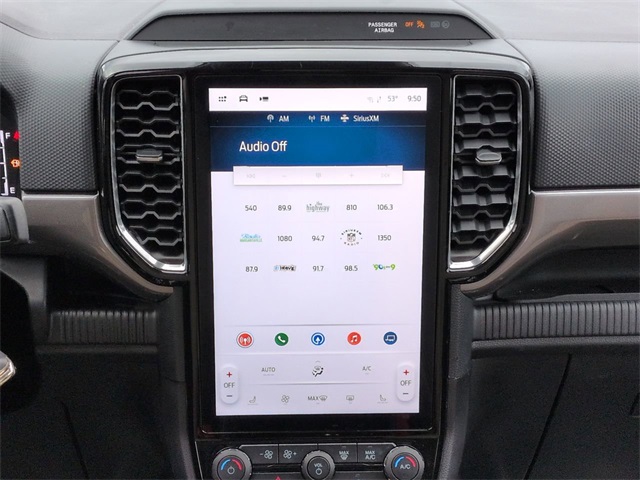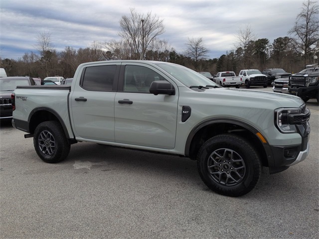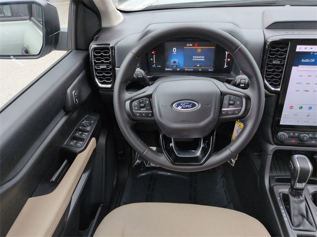 This 2024 Ford Ranger XLT in Cactus features: 4D Crew Cab, EcoBoost 2.3L I4 GTDi DOHC Turbocharged VCT, 10-Speed Automatic, 4WD, 12" Display in Center Stack, 360-Degree Camera, 4-Wheel Disc Brakes, ABS brakes, Adaptive Cruise Control, AM/FM radio: SiriusXM, Auto High-beam Headlights, Auto LED Headlights, Auto-dimming Rear-View mirror, Backup Camera, Blind Spot Monitoring, BLIS w/ Cross Traffic Alert, Bluetooth w/ Audio Streaming, Brake assist, Compass, Connected Built-In Navigation, Delay-off headlights, Dual-Zone Electronic Climate Control (DEATC), Electronic Stability Control, Emergency communication system: SYNC 4 911 Assist, Enhanced Active Park Assist, Equipment Group 301A High, Front Bucket Seats, Front Center Armrest, Front fog lights, Front Parking Sensors, Front wheel independent suspension, Fully automatic headlights, Gray Painted Center Bar & Grille Surround, Gray Painted Front Fascia & Rear Bumper, Gray Painted Wheel Lip Molding, Illuminated entry, Lane Keeping System, Leather Shift Knob, Low tire pressure warning, Navigation System, Navigation system: Connected Navigation, Outside temperature display, Overhead console, Panic alarm, Power door mirrors, Power Mirror Package, Power Package, Power Sliding Rear Window, Power steering, Power windows, Power-Sliding Rear Window, Pre Collision Assist w/ AEB, Premium Cloth Front Bucket Seats, Premium Cloth Front Heated Bucket Seats, Rear seat center armrest, Rear step bumper, Remote keyless entry, Remote Start, Security system, SiriusXM Satellite Radio, Soft Folding Tonneau Pickup Box Cover, Speed-sensing steering, Sport Appearance Package, Sport Box Decal, Steering wheel mounted audio controls, SYNC 4A w/Connected Navigation, Technology Package, Technology Package, Telescoping steering wheel, Tilt steering wheel, Traction control, Trip computer, Variably intermittent wipers, Wheels: 17" Gray-Painted Aluminum, Wireless Charging Pad, XLT Package.