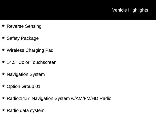 - Radio:14.5" Navigation System w/AM/FM/HD Radio