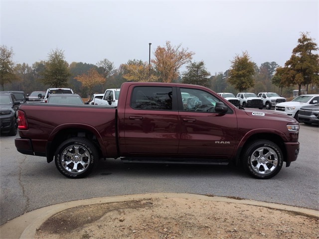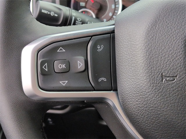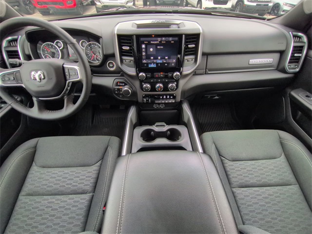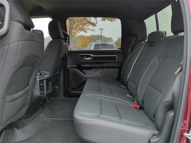 This 2025 Ram 1500 Big Horn/Lone Star in Delmonico Red Pearlcoat features: 4D Crew Cab, 3.6L V6 24V VVT, 8-Speed Automatic, 4WD, 115V Auxiliary Power Outlet, 2nd Row In Floor Storage Bins, 3 Rear Seat Head Restraints, 4 Way Front Headrests, 4-Wheel Disc Brakes, 400W Inverter, 4G LTE Wi-Fi Hot Spot, 4G WiFi Hotspot Telematics, 6 Speakers, 8" Color Touchscreen, ABS brakes, Adaptive Cruise Control, AM/FM radio, Android Auto, Apple Carplay, Apple CarPlay/Android Auto, Auto LED Headlights, Auto Power-Folding Mirrors, Auto-Dimming Exterior Driver Mirror, Auto-Dimming Rear-View Mirror, Backup Camera, Big Horn Badge, Big Horn Level 1 Equipment Group, Black Exterior Mirrors, Black Interior Accents, Black Premium Power Mirrors, Blind Spot Monitoring, Bluetooth w/ Audio Streaming, Body Color Door Handles, Body Color Front Bumper, Body Color Rear Bumper w/Step Pads, Body Color Tailgate Handle, Brake assist, Bucket Seats, Cold Weather Package, Compass, Convex Wide-Angle Exterior Mirror Insert, Delay-off headlights, Deluxe Cloth Bucket Seats, Electronic Stability Control, Exterior Mirrors Courtesy Lamps, Exterior Mirrors w/Heating Element, Exterior Mirrors w/Supplemental Signals, Front Center Armrest w/Storage, Front fog lights, Front Pedestrian Braking, Front Seat Back Map Pockets, Front wheel independent suspension, Full Length Floor Console, Full Speed Auto Collision Warning Plus, Fully automatic headlights, Glove Box Lamp, GPS Antenna Input, Grille Surround 1 Body Color Texture 1 Black, Heated door mirrors, Heated Front Seats, Heated Steering Wheel, Hill Start Assist, Illuminated entry, Integrated Voice Command w/Bluetooth, Leather Wrapped Steering Wheel, LED Foglights, Low tire pressure warning, Manual Adjust 4-Way Front Passenger Seat, Outside temperature display, Overhead console, Panic alarm, Parking Sensors, Power 2-Way Driver Lumbar Adjust, Power Adjust 8-Way Driver Seat, Power Adjustable Pedals, Power door mirrors, Power Mirror Package, Power Package, Push Button Start, Quick Order Package 23Z Big Horn, Radio data system, Radio: Uconnect 5 W w/8.4" Display, RAM Grille Badge - Chrome, Rear 60/40 Folding Seat, Rear Center Armrest, Rear Cross Traffic Alert, Rear Power Sliding Window, Rear step bumper, Rear Window Defroster, Remote Start, Reverse Brake Assist, Reverse Sensing, Safety Package, Speed control, Sport Appearance Package, Steering Wheel Mounted Audio Controls, Sun Visors w/Illuminated Vanity Mirrors, Suspension Package, Telescoping steering wheel, Tilt steering wheel, Tow Package, Traction control, Trailer Brake Control, Trailer Package, Trip computer, Universal Garage Door Opener, USB Host Flip, Variably intermittent wipers, Wheels: 18" x 8" Cast-Aluminum Painted.