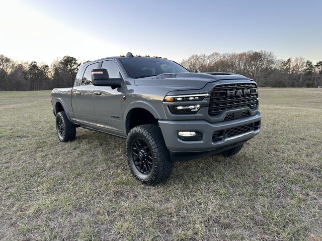 This 2026 Ram 3500 Limited in Ceramic Gray Clearcoat features: 4D Mega Cab, 6.7L I6, 8-Speed Automatic, 4WD, 17 Speakers, 4 INCH BDS LIFT WITH FOX SHOCKS 37 INCH NITTO RIDGEGRAPPLERS, 4-Wheel Disc Brakes, 5th Wheel/Gooseneck Towing Prep Group, 6,000 lbs Front Axle with Hub Extension, ABS brakes, Active Lane Management System, Adaptive Cruise Control, Adaptive Steering, Adaptive Steering System, Adjustable pedals, AM/FM radio: SiriusXM with 360L, Android Auto, Apple CarPlay/Android Auto, Audio Package, Auto High-beam Headlights, Auto-dimming door mirrors, Auto-dimming Rear-View mirror, Automatic temperature control, Backup Camera, Black Exterior Truck Badging, Black Grille Limited, Black Wheel Center Hub, Blind Spot Monitoring, Bluetooth w/ Audio Streaming, Body Color Grille Surround, Box and Rear Fender Clearance Lamps, Brake assist, Center Stop Lamp with Cargo View Camera, Clearance Lamps, Cold Weather Group, Cold Weather Package, Compass, Dash Pass Thru Wire Circuits, Delay-off headlights, Digital Rearview Mirror, Driver Attention Warning, Drowsy Driver Detection, Electronic Stability Control, Engine Block Heater, Front & Rear Park Assist, Front Center Armrest w/Storage, Front dual zone A/C, Front fog lights, Front Pedestrian Braking, Full Speed Auto Collision Warning Plus, Fully automatic headlights, Garage door transmitter, Genuine wood console insert, Genuine wood dashboard insert, Genuine wood door panel insert, harman/kardon Speakers, Heated door mirrors, Heated front seats, Heated rear seats, Heated steering wheel, Illuminated entry, Instrument Panel Mounted Auxiliary Switches, Lane Departure Warning, Lane Keeping System, Leather Seats, Leather steering wheel, LED Bed Lighting, Limited Level 1 Equipment Group, Limited Package, Low tire pressure warning, Memory seat, MOPAR Spray in Bedliner, MOPAR Winter Front Grille Cover, Navigation System, Night Edition, Outside temperature display, Overhead console, Panic alarm, Parking Sensors, ParkView Rear Back-Up Camera, Pedal memory, Pickup Box, Power Deployable Running Boards, Power driver seat, Power Mirror Package, Power Package, Power passenger seat, Power Running Boards, Power steering, Power Sunroof, Power windows, Preferred Equipment Package, Premium Audio Package, Premium Sound Package, Push Button Start, Quick Order Package 24M Limited, Radio: Uconnect 5 Nav with 14.4" Display, Rain sensing wipers, Rear Cross Traffic Alert, Rear seat center armrest, Rear step bumper, Remote keyless entry, Remote Start, Reverse Brake Assist, Reverse Sensing, Safety Package, Security system, Speed control, Split folding rear seat, Sport Performance Hood, Steering wheel mounted audio controls, Sunroof/Moonroof, Surround View Camera System, Tilt steering wheel, Traction control, Traffic Sign Recognition, Traffic Sign Recognition, Trailer Reverse Guidance, Trailer Tire Pressure Monitoring System, Trip computer, Turn signal indicator mirrors, Ultra Premium Leather Seats, Vendor Painted Cargo Box, Vendor Painted Cargo Box Tracking, Ventilated front seats, Wheels: 20" x 8" Night Edition Black Aluminum, Wireless Charging Pad.